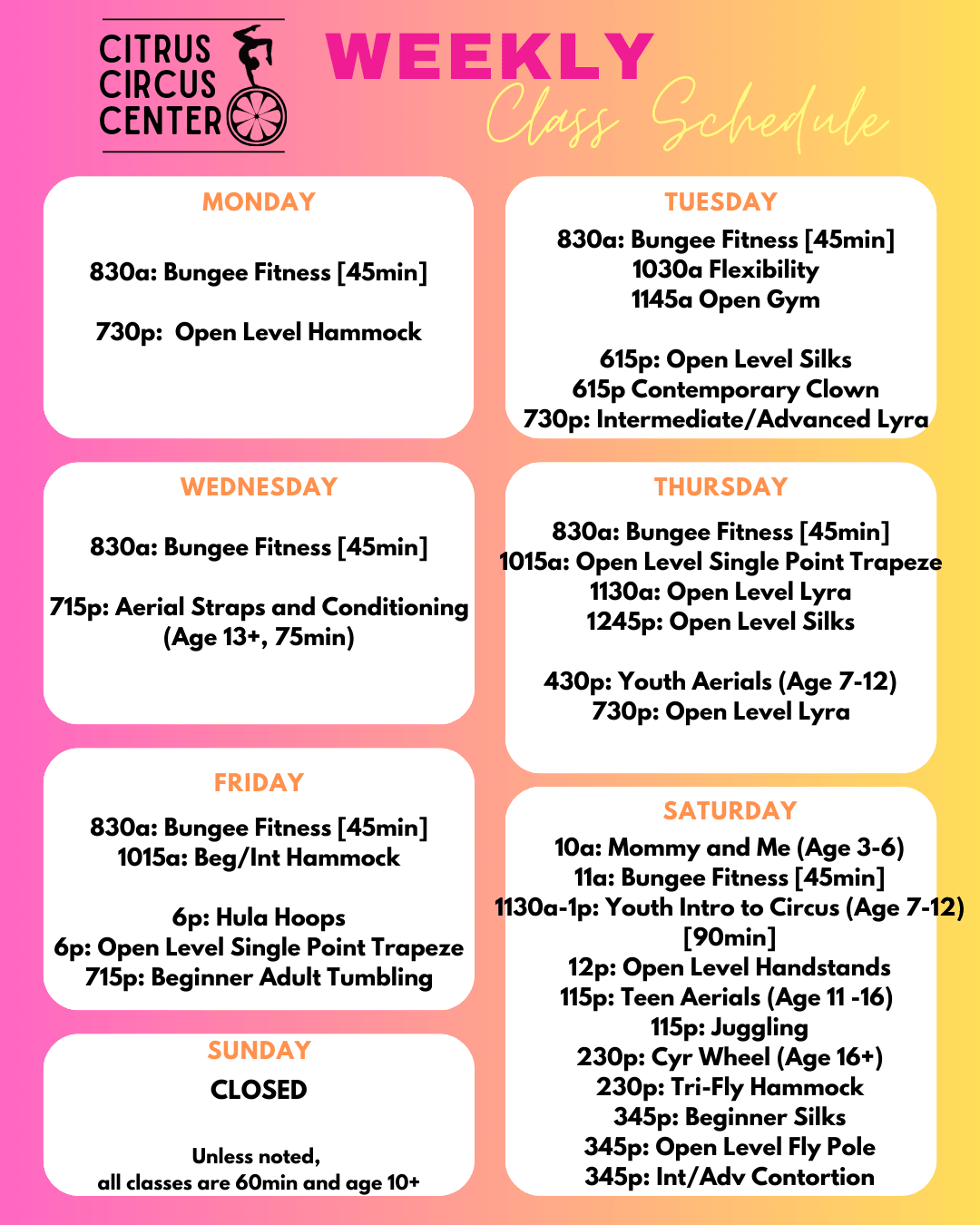 Please visit our Citrus Circus Center website for more information about local Southwest Florida classes!